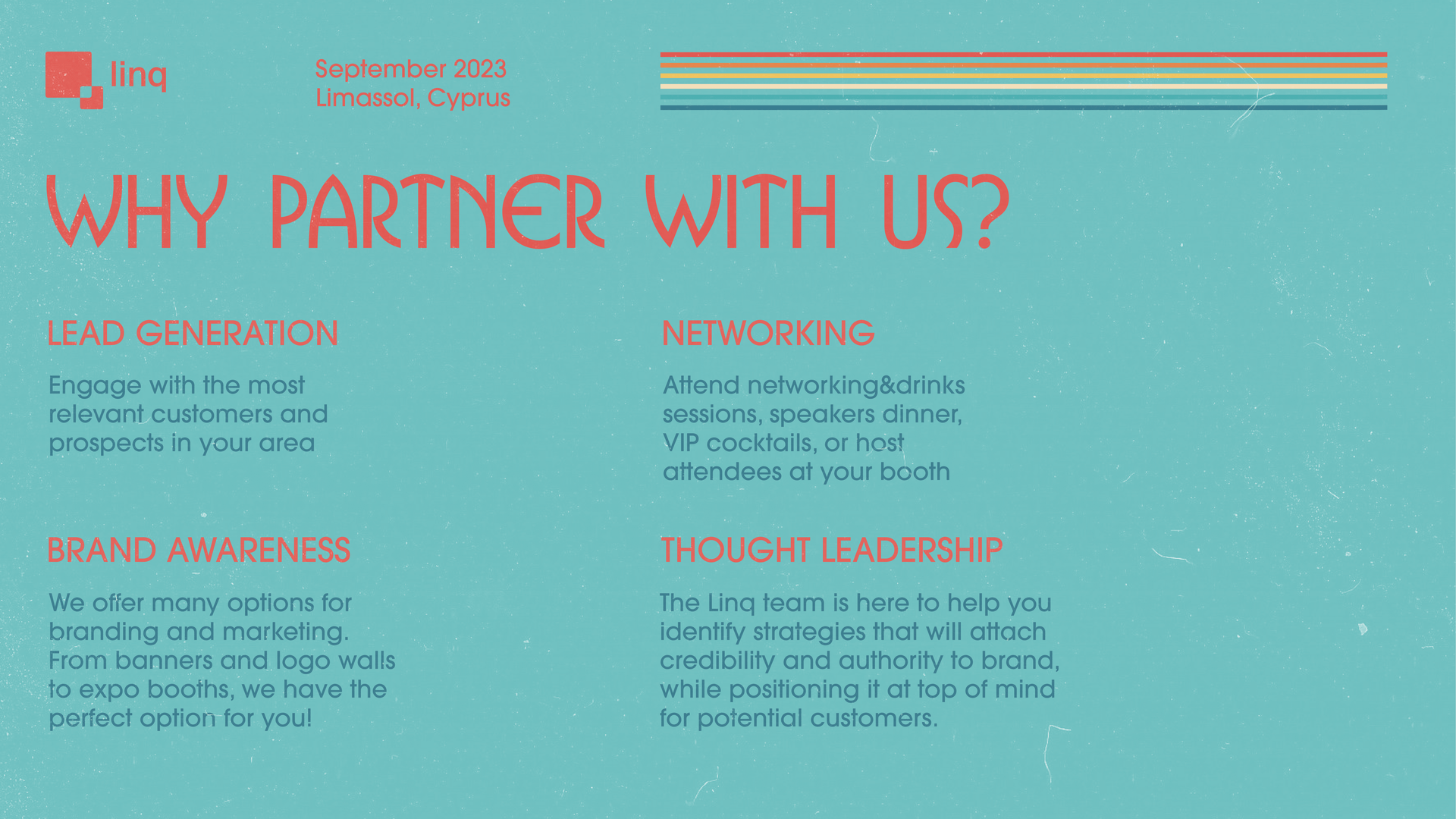For this IT conference in Cyprus, I created the full visual identity from the ground up—drawing inspiration from retro LA vibes as requested by the client to bring fresh, unconventional energy to the tech scene. The visual language was first implemented through the main concept presentation, which set the tone for the entire event. I also designed the sponsorship proposal deck, shaping both the look and narrative to help communicate the vision and attract key partners.