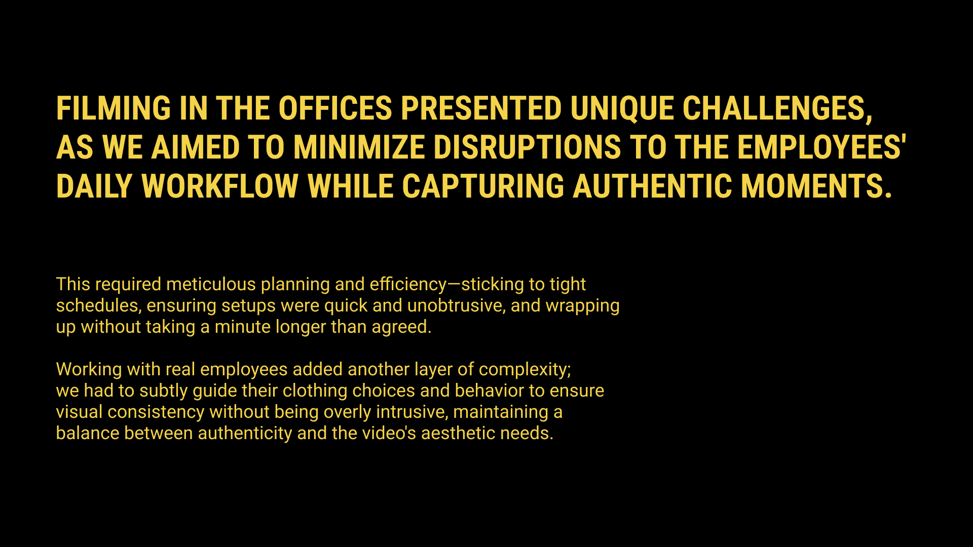 As the director, my role was to bring this concept to life by balancing humor with authenticity, ensuring the scenarios resonated with viewers while maintaining a professional tone that aligned with Exness’s brand. From scripting and storyboarding to coordinating filming, styling, and sound design, the goal was to create an engaging and memorable piece highlighting Exness’s unique onboarding and employee support approach.