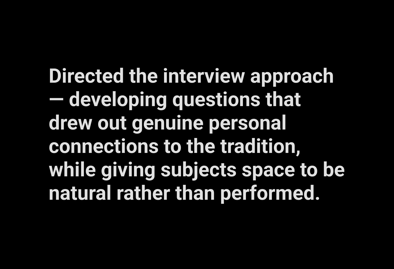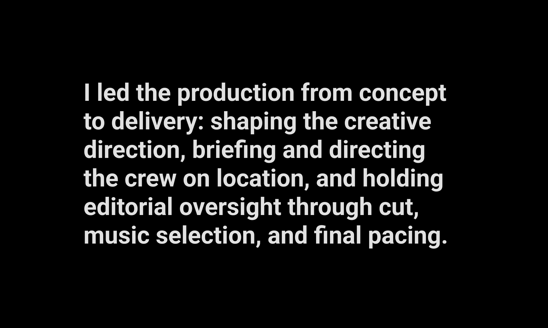 I led the full production — developing the creative concept, directing on-location shoots, briefing the crew on visual approach, and overseeing edit, music, and pacing through to final delivery.