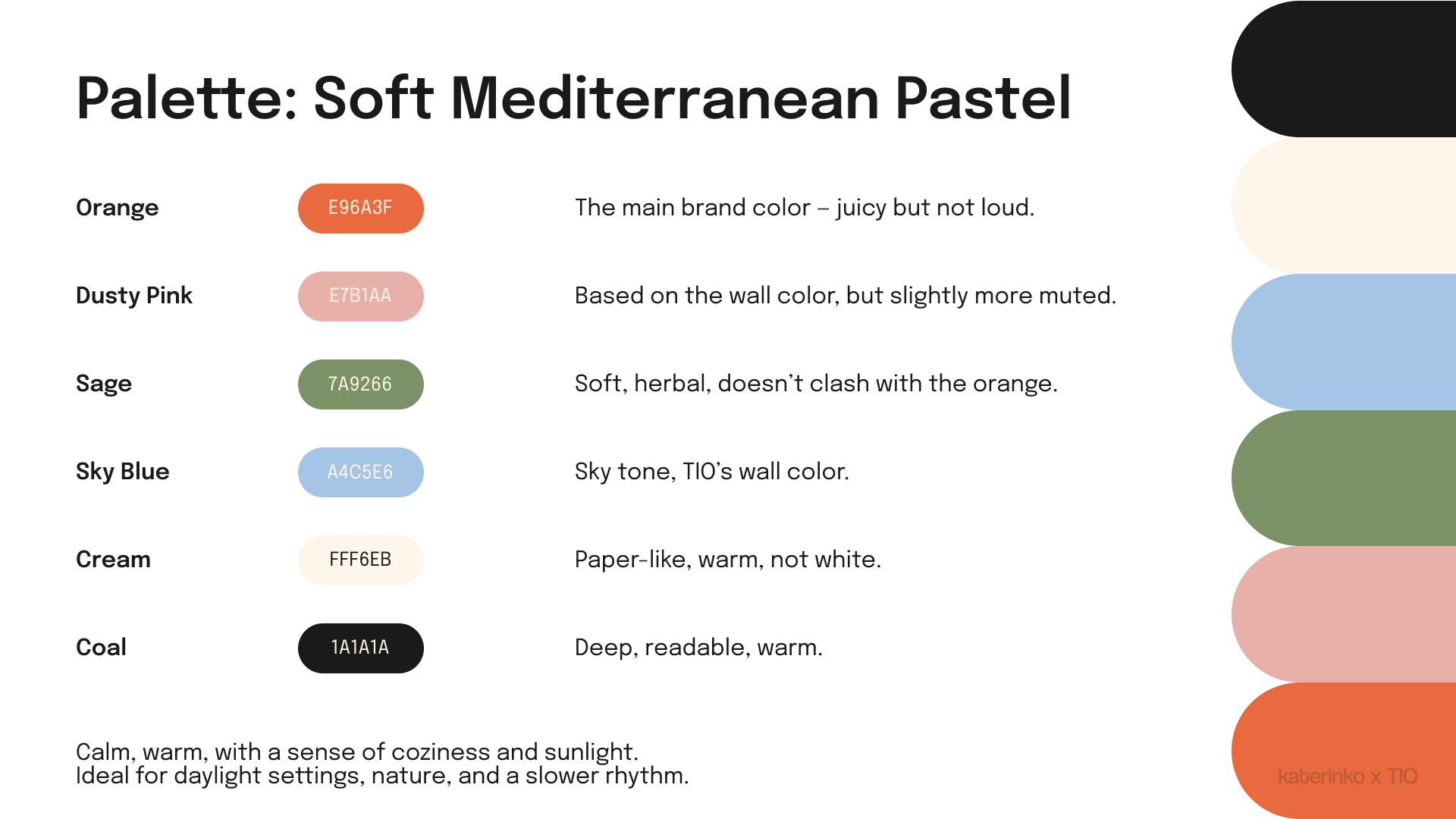 From strategic refinement to visual system design, I helped evolve TÍO from its Cali-Mex roots into a confident Mediterranean identity — grounded, elegant, and built to grow.